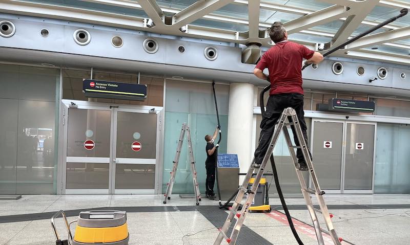 “Riguardo lo stato di avanzamento dei lavori di pulizia e bonifica al Terminal A – si fa sapere attraverso una nota della Sac diramata nella serata di ieri – sono in campo squadre appartenenti a 5 aziende diverse, tra le quali la specialista di bonifiche Belfor, che ha già lavorato sul Terminal 3 di Fiumicino a seguito dell’incendio del 2015. I lavori procedono h24″.