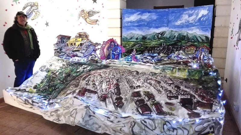 CANICATTINI – Il Sindaco di Amatrice, Sergio Pirozzi, la cittadina laziale in provincia di Rieti distrutta dal terremoto dello scorso 24 Agosto e dalla continua e drammatica attività sismica che sino a qualche giorno addietro ha interessato il Centro Italia, e ha pagato il prezzo più alto, in vite umane, ben 235 morti sui quasi 300 che quelle scosse hanno causato, venuto a conoscenza dell’iniziativa solidale e di sensibilizzazione che in occasione del Natale ha voluto realizzare a Palazzo Messina-Carpinteri, sede della Biblioteca comunale, con il suo Presepe dipinto su carta, l’artista canicattinese, Sergio Carpinteri, con il patrocinio del Comune di Canicattini Bagni, rappresentando Amatrice com’era e com’è dopo il sisma, ha voluto ringraziare Carpinteri con una e-mail inviata al Comune.