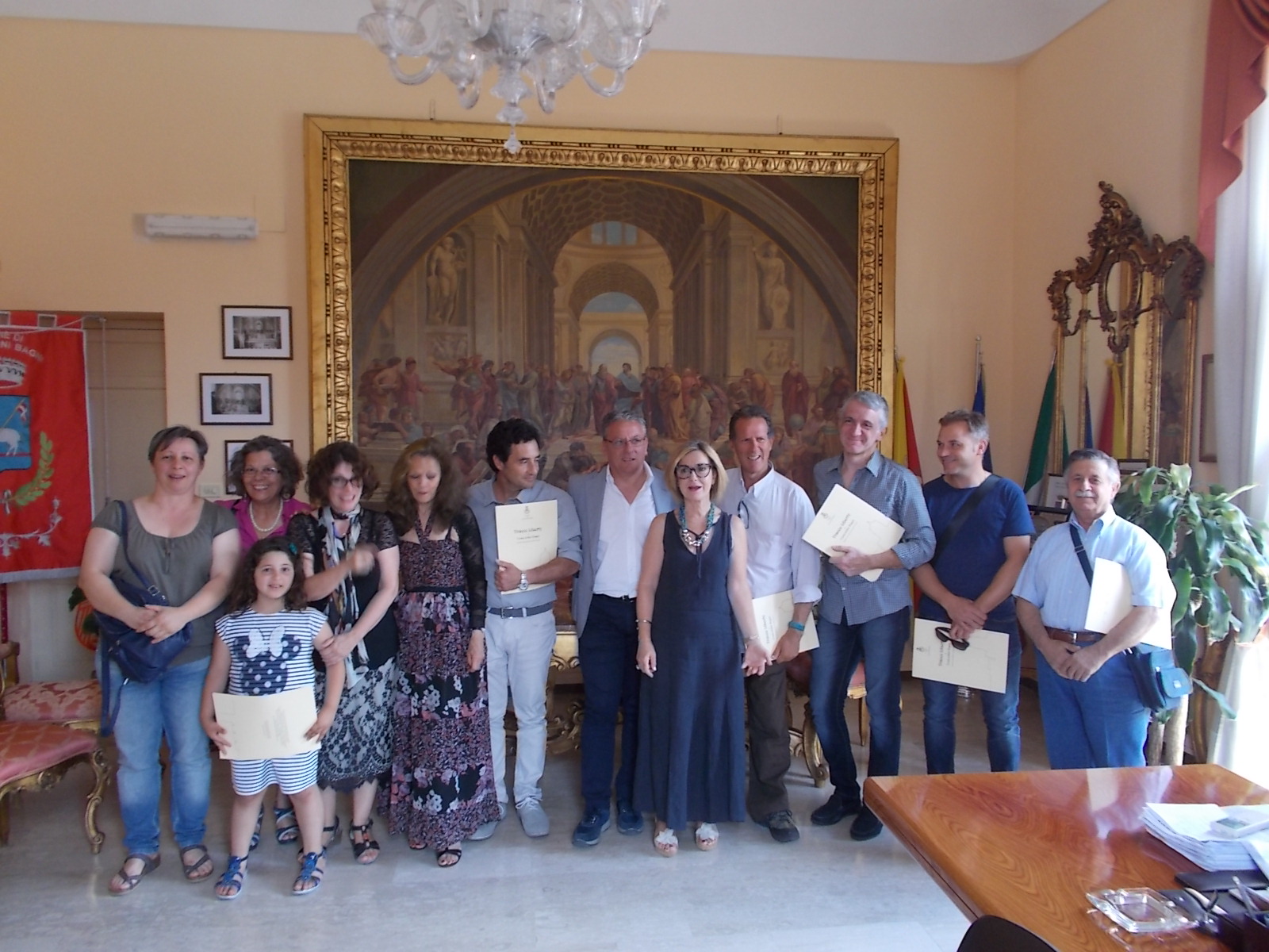 Presenti, insieme al sindaco Paolo Amenta, la responsabile del workshop, la professoressa Loredana La Bianca, che con il marito Rosario Sarcià dirige l’Agriturismo Stallaini e il progetto artistico che coniuga Natura – Arte – Cultura.