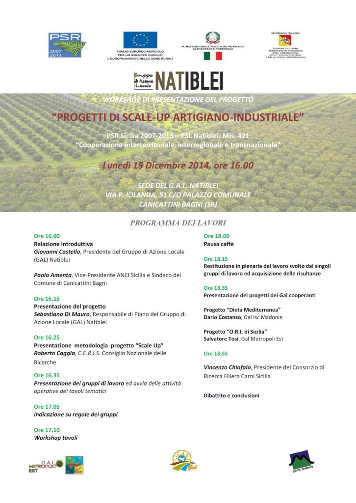 Tramite la stretta interazione del Gal Natiblei, nell’ambito Progetti di cooperazione del PSR Sicilia 2007/2013, con la collaborazione del Ceris-Cnr, dell’Università di Messina, dell’Acheia e del Gal – Agenzia di Sviluppo degli Iblei, il Gal Isc Madonie, il Gal Metropoli Est, il Consorzio di Ricerca Filiera Carni Sicilia, e il sistema delle imprese del territorio, si presenta Lunedì 15 Dicembre 2014 ore 16 nell’Aula Consiliare di Canicattini Bagni, in via Principessa Jolanda 51, uno dei progetti “pilota” di “O.R.I. del Mediterraneo”, alquanto innovativo, curato dall’Agenzia di Sviluppo degli Iblei, teso alla valorizzazione integrata delle filiere agrumicolo – zootecniche, al fine di produrre nuove carni certificabili salutistiche, attraverso l’uso di materie rinvenienti da variegate biomasse di scarto di lavorazione, a partire dal “pastazzo di agrumi”.