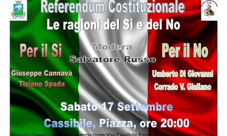 Cassibile (SIRACUSA) – Il C.A.S. Comitato Attivisti Siracusani intende realizzare un dibattito sul prossimo Referendum Costituzionale, dove i cittadini italiani saranno chiamati...