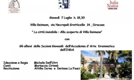 Siracusa – Avrà luogo domani alle ore 18.30 a villa Reimann lo spettacolo: “La città invisibile: alla scoperta di villa Reimann”, con...