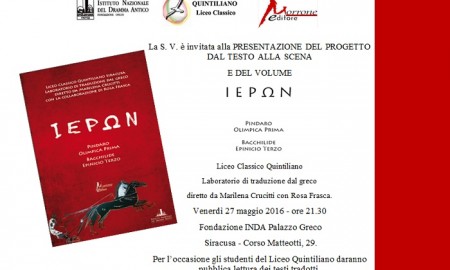 Siracusa – L’Istituto nazionale del dramma antico presenterà venerdì 17 giugno, alle 10, nel salone Amorelli di Palazzo Greco in corso Mattettotti...