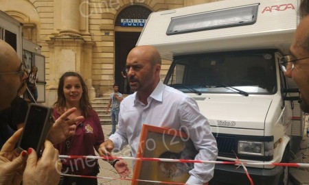 Omaggio artistico “a sorpresa” sul set de “Il commissario Montalbano” presso il palazzo municipale di Via F. Mormino Penna, a Scicli. Un...