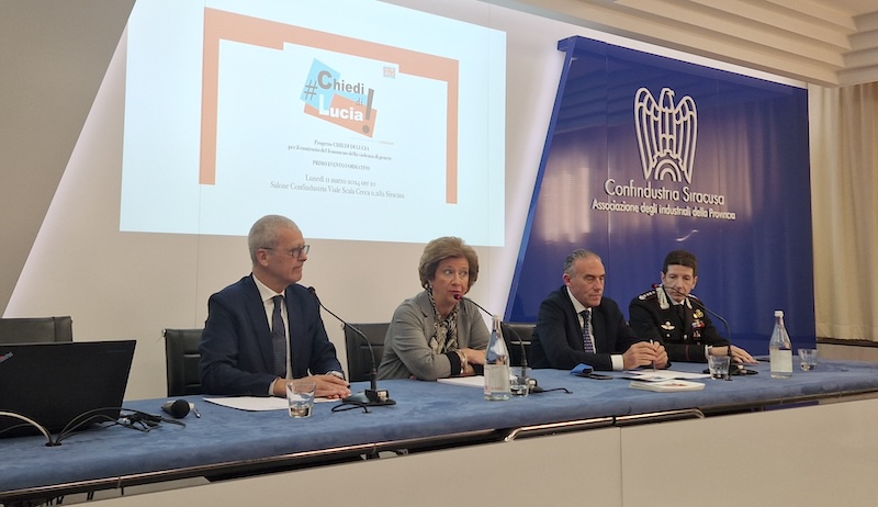 SIRACUSA – Si è tenuto stamani, nella sede di Confindustria Siracusa, il primo degli incontri formativi previsti nell’ambito del progetto “Chiedi di Lucia!” promosso dalla Prefettura di Siracusa con il coinvolgimento di operatori economici, commercianti, artigiani, imprenditori e farmacisti.