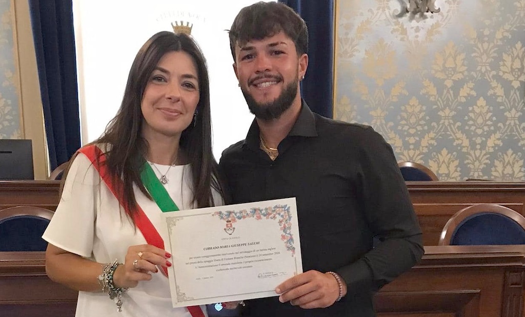 Il ventunenne Corrado Salemi, bagnino in servizio in un lido di Fontane Bianche, frazione di Siracusa, ha salvato la vita di un turista che annaspava tra le onde. Allertato dalle grida della moglie del turista, si è immediatamente tuffato in mare, affrontando condizioni critiche. Durante il salvataggio, il turista, preso dal panico, ha anche ostacolato involontariamente il soccorritore, rendendo l’intervento ancora più complesso. Il ventunenne, con grande forza e lucidità, è riuscito a portarlo in salvo, supportato nei momenti finali dal collega Antonio Genovese.