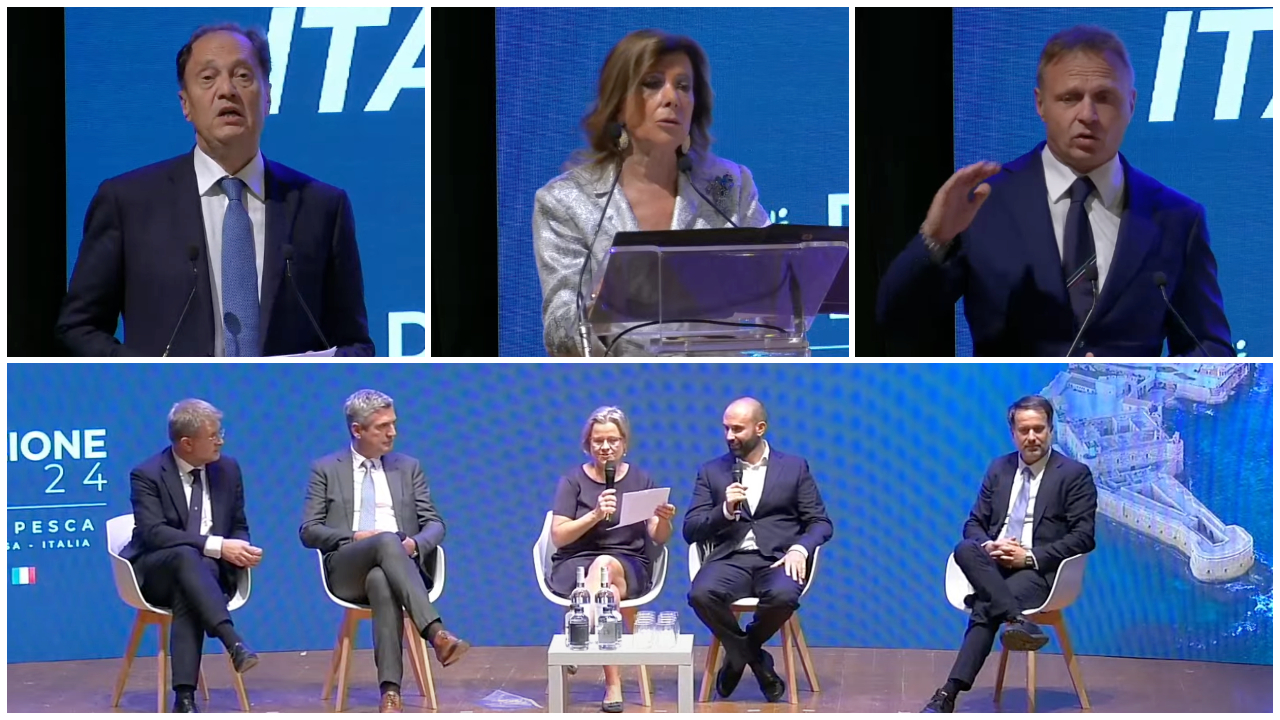 Il convegno si è articolato in due panel, con interventi in presenza e da remoto. Il primo ha visto la partecipazione sul palco di Veronika Vrecionová (vedi collage di copertina, foto in basso), presidente della commissione Agricoltura del Parlamento europeo, e, tramite videoconferenza, di Antonio Decaro, presidente della commissione Ambiente del Parlamento europeo, e Carmen Crespo-Diaz, presidente commissione Pesca del Parlamento europeo, Luca De Carlo, presidente della commissione Agricoltura del Senato della Repubblica e Mirco Carloni, presidente della commissione Agricoltura della Camera dei deputati. Presenti, altresì, i rappresentanti della Consulta dei ministri dell’Agricoltura della Repubblica italiana, i parlamentari europei componenti della commissione Agricoltura e Pesca del Parlamento europeo eletti in Italia e i parlamentari delle commissioni Agricoltura della Camera e del Senato.