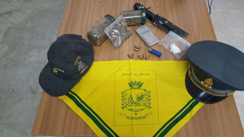 Dalla successiva perquisizione venivano, oltretutto, rinvenuti un bilancino di precisione, un pugnale da caccia della lunghezza di 28 cm e 8 proiettili inesplosi per pistola parabellum, calibro 7.65. Dal controllo dell’abitazione, inoltre, veniva riscontrato che l’indagato si allacciava abusivamente alla rete elettrica. Richiesto l’intervento dei tecnici dell’E.N.E.L, è stata interrotta l’attività furtiva a danno del fornitore del servizio.