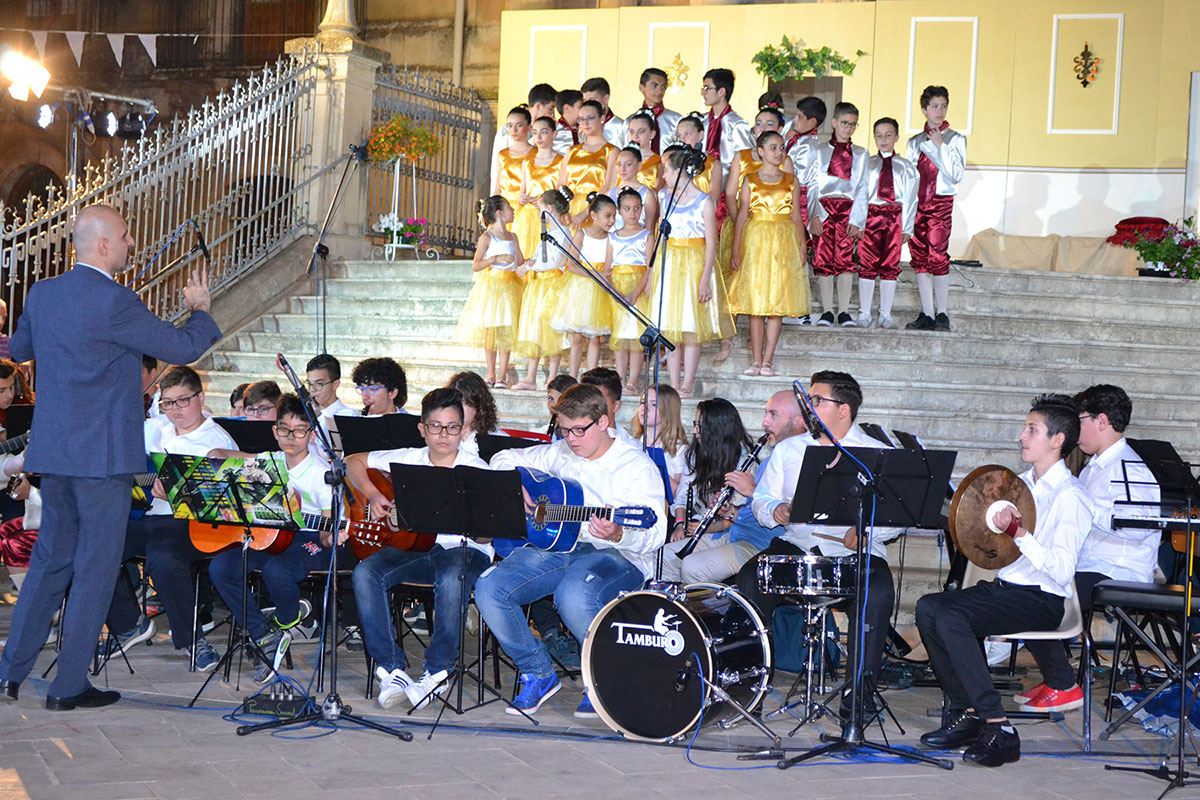 Floridia – Oltre 150 alunni si sono esibiti in coro, orchestra, balletto e teatro, per lo spettacolo di fine anno del 1° Istituto Comprensivo De Amicis di Floridia, tenutosi nei giorni scorsi nel sagrato della Chiesa del Carmine di piazza Marconi. In scena la rappresentazione teatrale e musicale “Pupattolina” di Luigi Capuana, liberamente tratta dalla Novella omonima dello scrittore verista. Con la regia della professoressa Mariannella Mangiafico e dell’insegnante Flavia Alicata, la direzione della giovane orchestra guidata dal professore Corrado Genovese (nella foto), nella trama dello spettacolo è emersa la figura di una bambina vezzeggiata oltremodo dalla madre, a tal punto da risultare ridicola agli occhi dei propri coetanei. La novella ha assunto un valore morale pregnante rivolto ai piccoli, nell’ammonimento a naturalezza e spontaneità troppo spesso dimenticate, ma anche e soprattutto ai grandi, nell’esortazione a non deformare la natura dei propri figli, con il rischio di comprometterne persino la loro salute. Su questi temi si è sviluppato l’intero spettacolo, aperto con la Sinfonia dei giocattoli di Leopold Mozart, di cui è stata eseguita l’Ouverture iniziale, dopo la danza della scuola dell’infanzia guidata dall’insegnante Maria Burgio e i successivi minuetti accompagnati dai balletti curati dalla professoressa Eleonora Zuccaro. Poi la citazione più attesa, quella della fiaba “La Bella addormentata nel bosco”, insita nella stessa novella verista, richiamata dal grandioso Balletto di Piotr Ilich Tchaikovsky, di cui è stato interpretato il magnifico valzer opera 66. Tra le pagine di maggiore gradimento, l’Inno alla Principessa Aurora, con la sfarzosa azione scenica sulle note marcianti di orchestra e coro, ma anche la danza dei giocattoli, leitmotiv dell’intero spettacolo, nel finale della sinfonia con il balletto curato dall’insegnante Maria Salerno. Un’ulteriore occasione di crescita per gli alunni dell’istituto floridiano e per i giovani musicisti del Corso ad Indirizzo Musicale annesso alla stessa scuola, guidato dai professori Fulvio Bazzano e Lucia Cammarata ai clarinetti, Chris Iemulo e Giuliana Ansaldi alle chitarre, Giuseppina Stella e Concetta Mangiafico alla direzione del coro. Soddisfazione hanno mostrato il Dirigente dell’Istituto “De Amicis”, Giorgio Agnellino, e l’Assessore alla Cultura, Mario Bonanno, esprimendo il loro plauso per il valore dell’esecuzione musicale e teatrale, insieme alla spettacolarità del corpo di ballo, con coreografie curate minuziosamente e costumi realizzati in stile classico. Non ultimi i dettagli scenografici curati dalla professoressa Michela Grasso e il manifesto dello spettacolo, raffigurante la stampa del noto trattato “Le maitre à danser” di Pierre Rameau, le cui coreografie sono state ricostruite nel “Minuetto” centrale dell’opera. L’intero spettacolo, lungamente applaudito dalla gremita piazza carmelitana, è stato dedicato alla memoria del compianto professore Corrado Bottaro, già docente di chitarra nello stesso istituto floridiano.