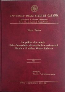 FLORIDIA – La figura di un uomo politico come Orazio Scalorino che ha fatto la storia politica  a Floridia come Sindaco ma anche come deputato regionale è stato oggetto di una tesi di laurea della dott.ssa Flavia Farina che ha conseguito la Laurea Magistrale in Filologia Moderna con il titolo: “la politica che cambia. Dallo sbarco alleato alla nascita dei nuovi comuni: Floridia e il sindaco Orazio Scalorino.