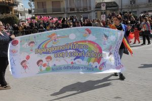 FLORIDIA – “Dipingiamo il futuro con i colori della pace” è stato il tema unico scelto dagli istituti comprensivi di Floridia per la sfilata dei bambini della scuola dell’infanzia e primaria. Questa mattina circa mille bambini hanno dato vita allo spettacolo con le coreografie che inneggiavano alla pace. Tutti i bambini erano colorati con i colori dell’arcobaleno che simboleggia la pace.