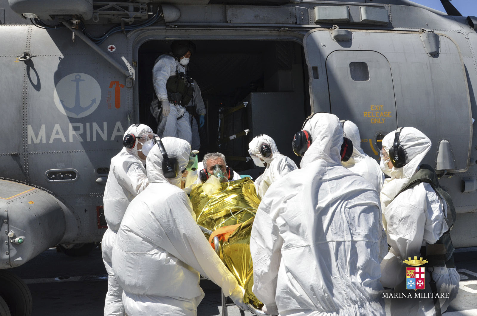 Il team medico dello Scirocco, constatate le condizioni di salute precarie del marinaio, ha valutato in tarda serata la  necessità di trasportarlo a mezzo elicottero a bordo di Nave Cavour, ammiraglia dell’operazione EUNAVFORMED, dove è imbarcato un vero e proprio ospedale di livello ROLE 2. A bordo della portaerei italiana, gli specialisti hanno effettuato subito accertamenti clinico-strumentali.