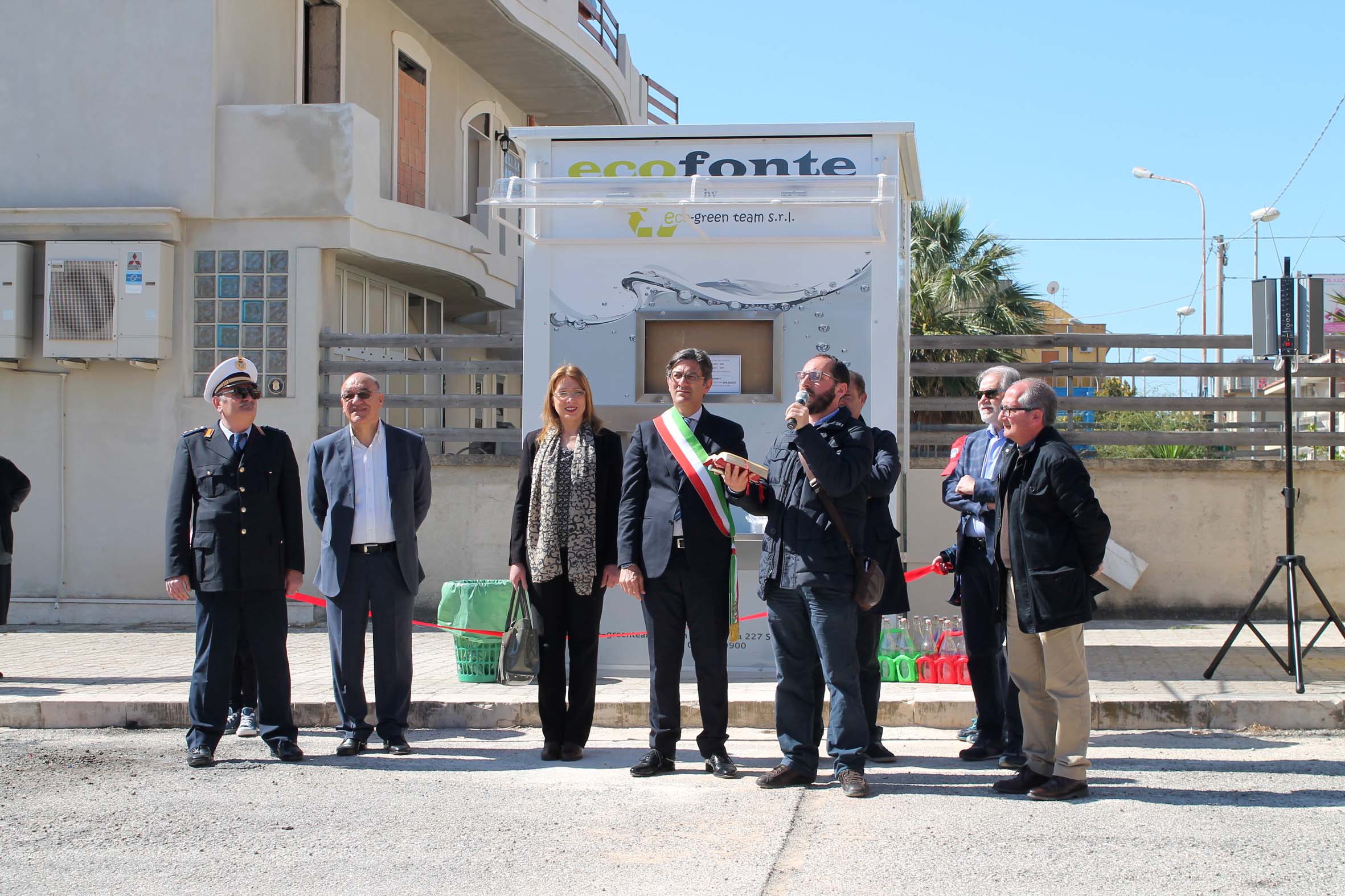 Rosolini – Cresce nel territorio comunale la presenza di impianti “Casa dell’Acqua” per la distribuzione di acqua potabile depurata, refrigerata (naturale e frizzante). Dopo quella posta in via S.Alessandra a ridosso del serbatoio comunale, ne entra in funzione una seconda ubicata tra la via Alighieri e la via Evola, nelle vicinanze del Plesso scolastico “Sacro Cuore”. Il taglio del nastro è avvenuto stamane nel corso di una cerimonia organizzata dall’Amministrazione Comunale alla quale erano presenti il Sindaco, ing. Corrado Calvo, gli assessori comunali Giorgia Giallongo e Corrado Modica, il Comandante la P.M. Orazio Agosta il Presidente della Commissione Cultura Corrado Calvo, il rappresentante della “Eco –Green Team srl”, Società che ha in gestione gli impianti di erogazione dell’acqua, don Alessandro Spatola Parroco della Chiesa del Cuore Immacolato di Maria . Numerosi i cittadini che hanno partecipato all’evento oltre le scolaresche accompagnate dagli insegnanti, in rappresentanza degli Istituti Comprensivi cittadini. Il Sindaco nel suo intervento, ha ringraziato gli intervenuti, i Dirigenti Scolastici, i funzionari comunali e quanti, a vario titolo, hanno contribuito alla realizzazione di questo importante servizio per i cittadini.