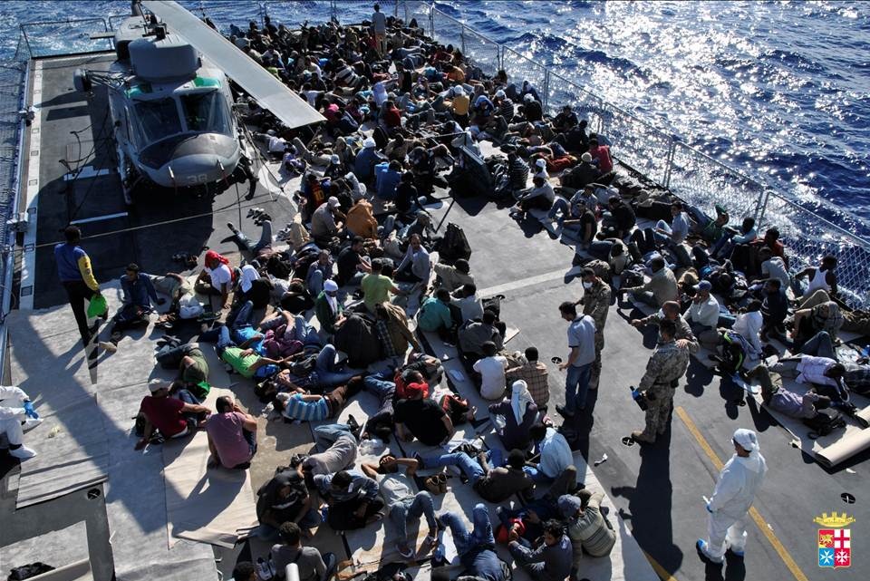 Durante la notte le navi della Marina Militare e delle Capitanerie di Porto inserite nel dispositivo Mare sono state impegnate in numerosi interventi di soccorso nello Stretto di Sicilia. In particolare la nave anfibia San Giusto in 4 interventi di soccorso a gommoni ha recuperato 403 migranti; a bordo della nave sono presenti 1238 migranti recuperati negli ultimi giorni. A bordo della corvetta Sfinge ci sono 543 migranti soccorsi ieri. Nave Dattilo delle Capitanerie di Porto ha soccorso un barcone con 185 migranti, tra loro 29 donne e 63 minori. A bordo della nave ci sono 807 migranti soccorsi negli ultimi due giorni.