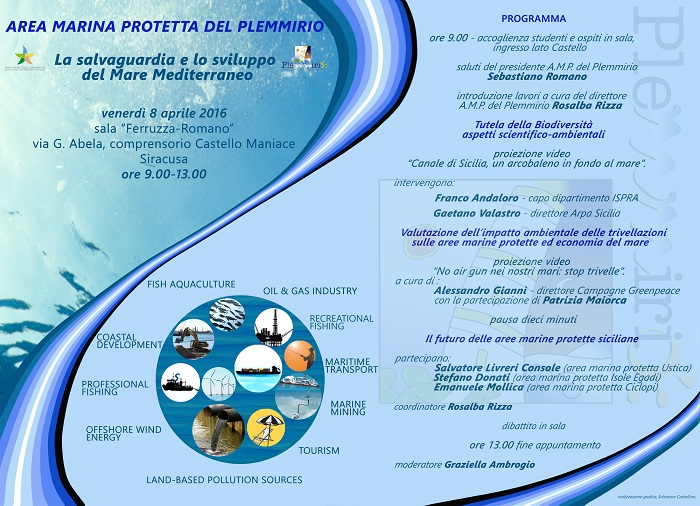 A concludere la giornata sarà un dibattito sul “Futuro delle aree marine protette siciliane” moderato dal direttore dell’Amp Plemmirio, a cui prenderanno parte alcuni esponenti delle oasi marine siciliane e che sarà aperto al pubblico.