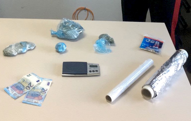 Durante la perquisizione dell’abitazione dell’uomo, i militari hanno rinvenuto, occultati all’interno del mobilio, 4 involucri contenenti complessivamente 110 grammi di marijuana, materiale idoneo al confezionamento e pesatura dello stupefacente nonché la somma di 100 euro circa in banconote di vario taglio, quale presumibile provento dell’attività di spaccio.