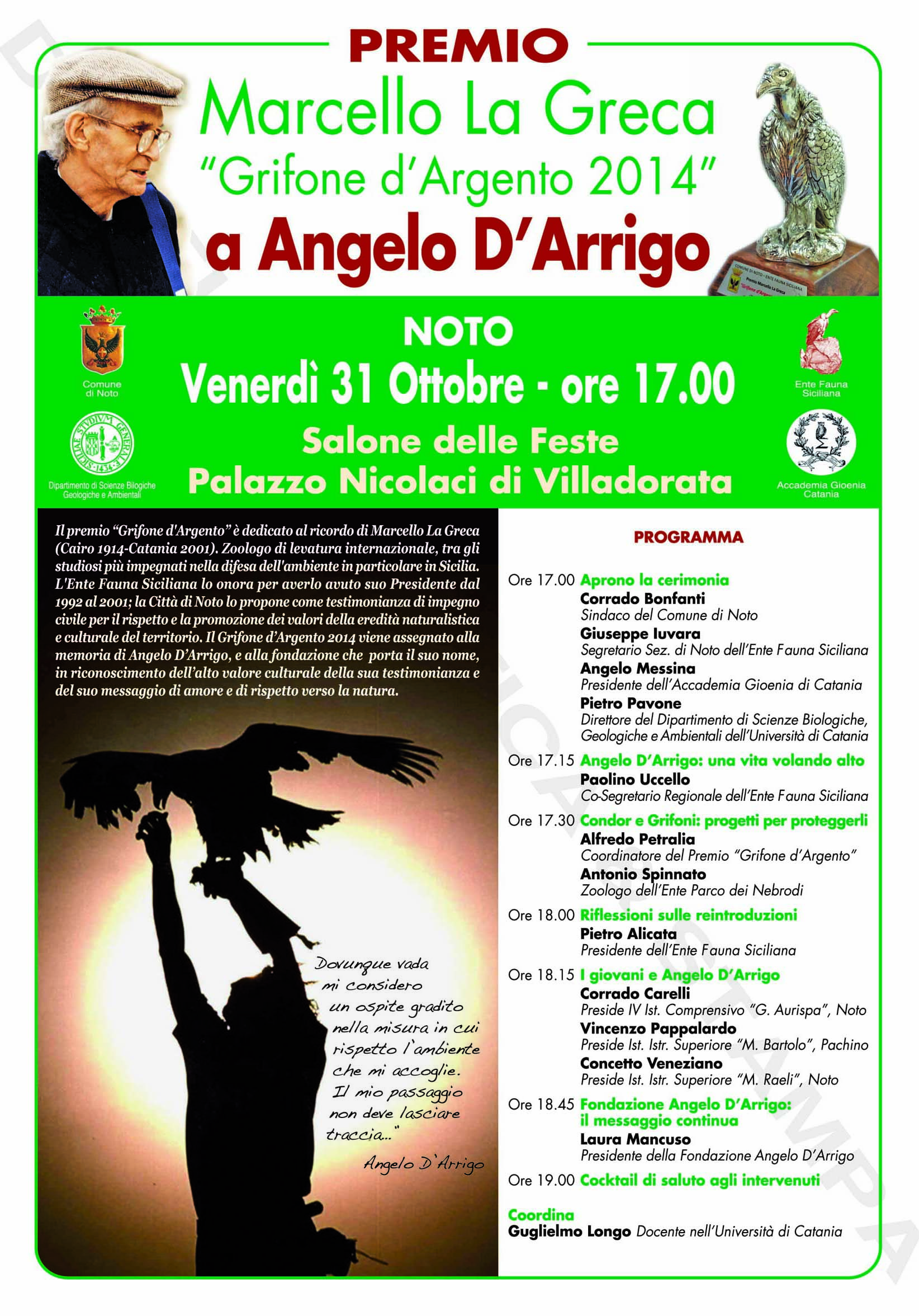 Il Premio La Greca è un’iniziativa dell’Ente Fauna Siciliana e del Comune di Noto.