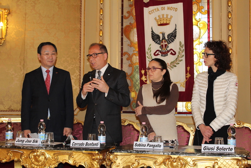 E’ stato subito feeling, non solo per il vino. Ma anche per intenzioni future di stabilire un ponte che colleghi Noto ancor di più all’Est asiatico. <<Nelle scorse edizioni dell’Infiorata, la manifestazione più importante organizzata a Noto dal lontano 1980 – ha proseguito Bonfanti – abbiamo già incontrato il Giappone nel 2013, e nel 2018 ospiteremo la Cina. E’ segno di un’attenzione speciale verso i Paesi asiatici. La Corea del Sud, è innegabilmente uno Stato in forte crescita, che guarda con interesse alle relazioni internazionali. Prova ne è la visita di oggi>>.