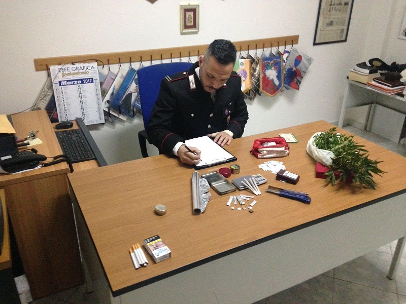 I Carabinieri, raccogliendo e sviluppando le segnalazioni di diversi residenti che hanno riferito di insoliti via vai di persone in determinate zone della cittadina, hanno organizzato un mirato servizio ponendo in essere una serie di perquisizioni finalizzate alla ricerca di armi, refurtiva e sostanze stupefacenti. Ed è stato proprio nel corso di una perquisizione domiciliare presso l’abitazione dei due uomini che i militari hanno rinvenuto, occultato in un contenitore per sigarette a sua volta riposto in un vaso sul pianerottolo dell’abitazione, circa 13 grammi di sostanza stupefacente del tipo hashish. Nel prosieguo delle operazioni di perquisizione, all’interno della cucina, i militari rinvenivano 4 “spinelli” confezionati con hashish nonché ulteriori 2 grammi circa della medesima sostanza oltre ad un bilancino elettronico di precisione ed al materiale occorrente per suddividere la sostanza e confezionarla in dosi. Sul balcone di casa, i Carabinieri rinvenivano altresì una piantina di canapa indiana di circa 70 cm di altezza.