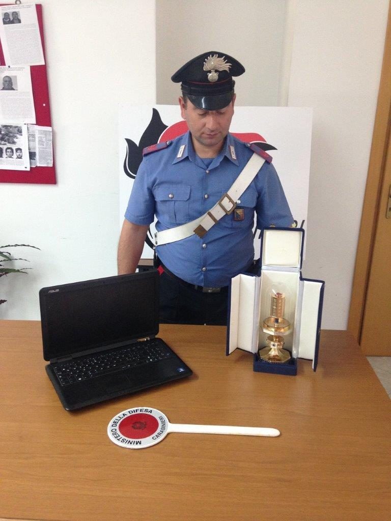 PACHINO – I Carabinieri della locale Stazione hanno denunciato in stato di libertà per il reato di ricettazione G. S. classe 1983: il giovane, a seguito di perquisizione domiciliare, veniva trovato in possesso di un computer portatile nonché di una reliquia del Beato Antonio Rosmini asportati nei giorni scorsi dalla chiesa “Madonna Greca Eleusa – Madre della Misericordia” sita a Portopalo di Capo Passero. Nel corso della mattinata odierna la reliquia, un’urna in oro ed argento di pregiata fattura contenente il sangue del Beato Antonio Rosmini, sarà restituita dal Comandante della Stazione al parroco Don Luca Manenti.