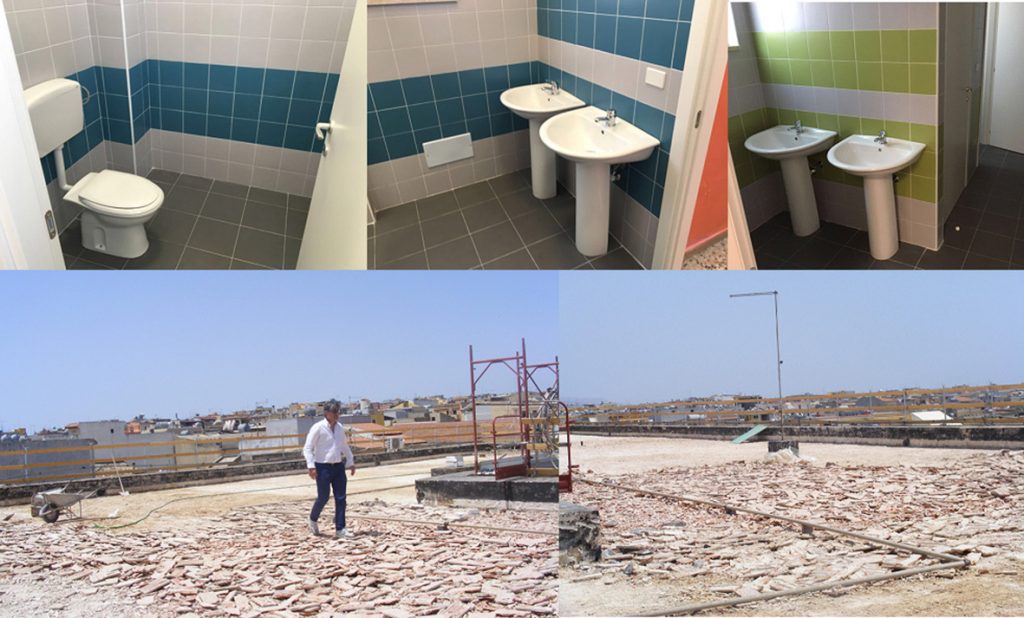ROSOLINI – A pochi giorni dall’inizio del nuovo anno scolastico gli alunni delle tre palazzine dell’Istituto Comprensivo S.Alessandra” potranno contare su nuovi ed efficienti servizi igienici. Sono stati infatti completati i lavori di rifacimento da parte della ditta appaltatrice nel pieno rispetto del crono programma consentendo in questo modo la consegna prima dell’inizio del nuovo anno scolastico. Nuovi e colorati arredi sanitari che offrono un nuovo look vivace e colorato all’ambiente e maggiore fruibilità sia sotto l’aspetto logistico che sotto l’aspetto igienico. Detti lavori, congiuntamente al rifacimento dell’impermeabilizzazione per risolvere i problemi legati alle infiltrazioni di acqua, la pavimentazione della copertura e la messa in sicurezza dei cornicioni nel plesso De Cillis, lavori anche questi in fase di ultimazione, per un importo complessivo di 461 mila euro, sono  frutto di due finanziamenti ottenuti dal Comune di Rosolini a seguito di partecipazione ad appositi bandi  previsti dal  Piano di Interventi strutturali europei 2007/2013.