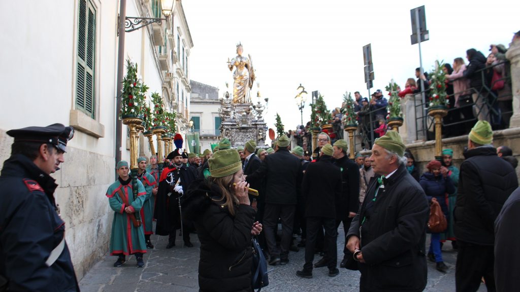 SIRACUSA – Una processione più veloce del previsto. Il simulacro di Santa Lucia è comparso sul sagrato della cattedrale alle 15,00 ed è arrivato nella chiesa della Borgata alle 18,30. La Deputazione della cappella di Santa Lucia ha deciso di anticipare i tempi, chiedendo ai portatori di “velocizzare” il passo per evitare il rischio pioggia. E così la processione odierna è stata quanto meno anomala. Una sola sosta “lunga”, quella delle 17 al Ponte Umbertino per il cambio dei portatori. Poi di nuovo spediti verso il Santuario del Sepolcro, dove la statua bronzea di Lucia ha fatto ingresso poco prima delle 18,30, con due ore e mezza di anticipo rispetto ai tempi previsti.