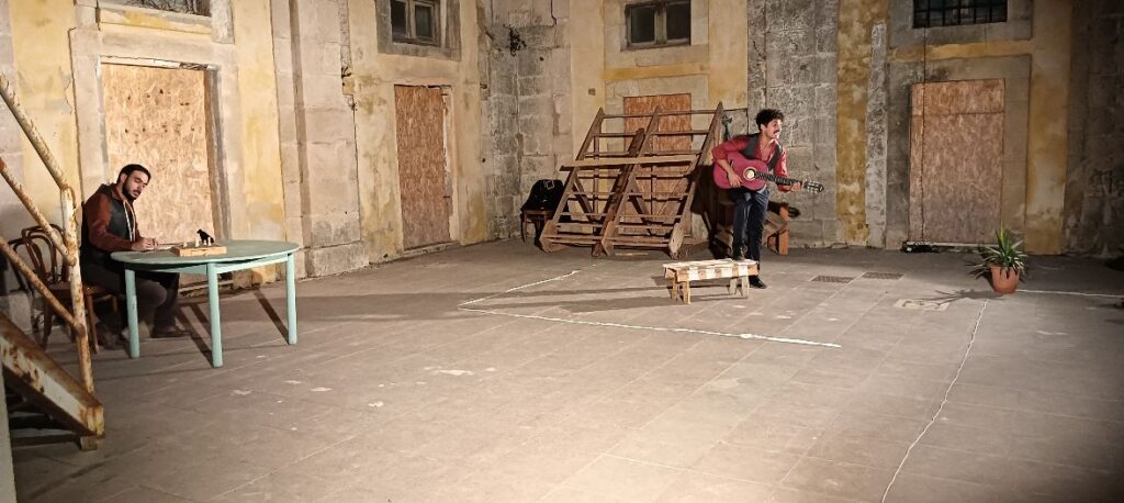SIRACUSA – Il primo ad entrare in scena è Antonio, che distribuisce deliziose caramelle al pubblico, invitando i presenti a partecipare al matrimonio del suo amico Bassanio, per il quale non esiterà a indebitarsi a rischio della sua vita. Poi si accendono le luci e si entra nel vivo dello spettacolo, con un palleggio continuo, quasi “onirico”, tra i due attori protagonisti. Un adattamento particolare quello operato da Corrado Drago, il quale ha portato in scena ieri sera all’ex convento dei carmelitani scalzi di Ortigia “U mircanti”, una riduzione de “Il mercante di Venezia”, affidando ai due attori le battute dello show, ognuno nel proprio dialetto. E così Edoardo Pipitone di Marsala ha recitato in palermitano, interpretando Shylock, mentre Sebastiano Caruso di Avola, nelle vesti di Antonio, lo ha fatto in siracusano.
