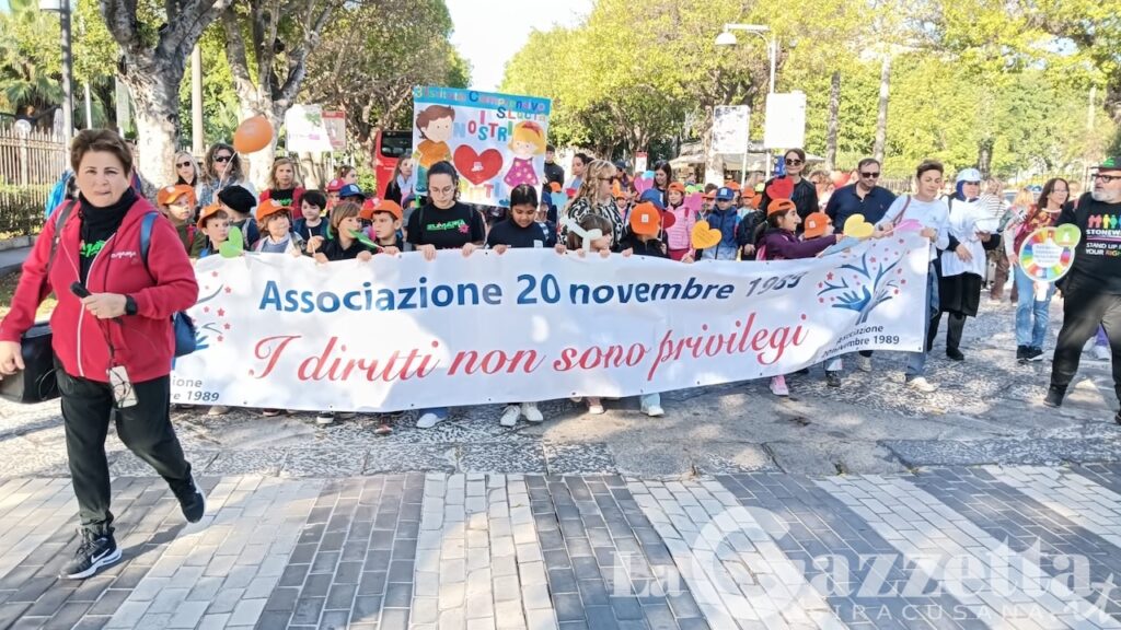 In occasione della ricorrenza della Giornata internazionale dell’infanzia e dell’adolescenza istituita dall’Onu, il corteo variegato e variopinto con bambini e adolescenti che hanno intonato slogan, portando striscioni, cartelli, si è snodato lungo corso Umberto I per poi raggiungere piazzale IV Novembre, dove è stata composta la scritta “Pace”. Sul posto si sono tenuti i laboratori dedicati ai più piccoli anche all’interno degli stand degli “Amici di Siracusa città educativa”. Testimonial dell’evento Vincenzo Maiorca, il siracusano campione del mondo di pattinaggio.