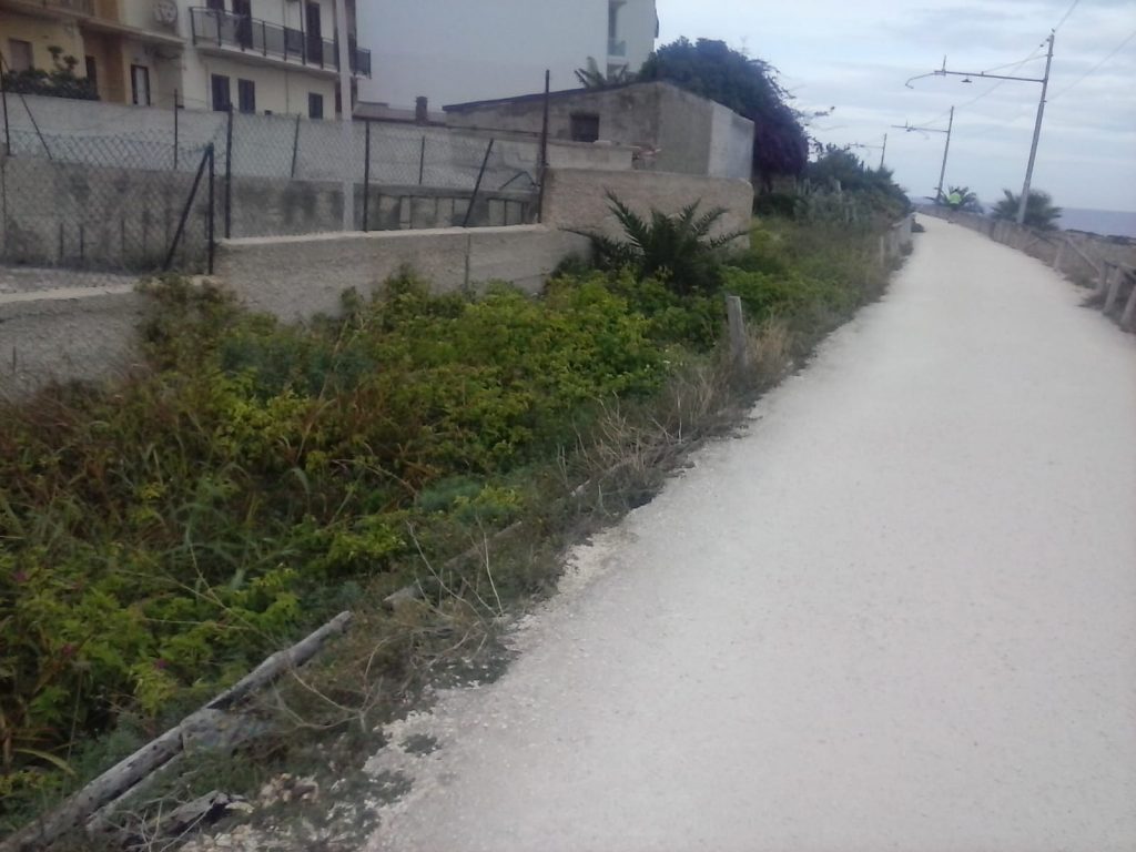 Diverse sono state negli ultimi giorni le segnalazioni sulle precarie condizioni di un percorso utilizzato anche nelle ore serali da molti sportivi amatoriali. Sono infatti numerosi coloro i quali vanno in bicicletta o fanno jogging a metà o nel tardo pomeriggio quando comunque il sole è già tramontato e servirebbe una illuminazione artificiale tutt’altro che fioca come quella attuale. I fari, posti ad una distanza di una cinquantina di metri l’uno dall’altra, non sono sufficientemente efficaci e, in alcuni tratti, specie nella zona nord, nei pressi della Tonnara, risultano non funzionanti. Buio fitto dunque per chi si avventura dopo le 17 da quelle parti per evitare assembramenti, considerato che i primi chilometri (dal Monumento ai Caduti fino all’altezza di via Cassia) sono spesso i più gettonati. Lì la situazione è un po’ migliore ma non mancano punti privi di luce. Gli stessi in cui la recinzione in castagno risulta divelta ed abbandonata per terra mentre nei pressi del Monumento ai caduti l’erba che aveva invaso la pista è stata tagliata da alcuni volontari che, così, hanno provveduto a ridare un pizzico di decoro in più all’ingresso della pista. In altre zone però la vegetazione è ancora presente e risulta fastidiosa non solo alla vista ma anche e soprattutto alla mobilità di corridori e ciclisti. Situazione simili al parco Robinson di piazzale Sgarlata e a quello di via Algeri, dove qualche giorno fa l’Amministrazione comunale ha consegnato 50 chiavi ad altrettanti ragazzini che lo terranno in custodia. Un gesto simbolico ma importante allo stesso tempo che cozza però con il degrado in cui è stato lasciato.