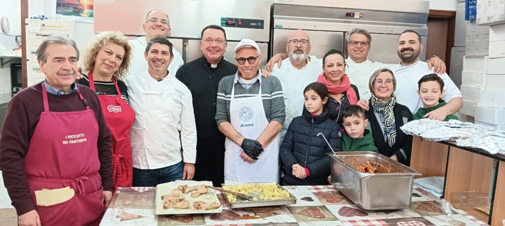 SIRACUSA – Pranzo di beneficenza alla parrocchia di San Tommaso al Pantheon, ma per la comunità guidata dal padre Massimo Di Natale non è una novità. Nel giorno di Capodanno a preparare e servire i pasti sono stati gli uomini e le donne del caseificio Borderi, con in testa il titolare Andrea.
