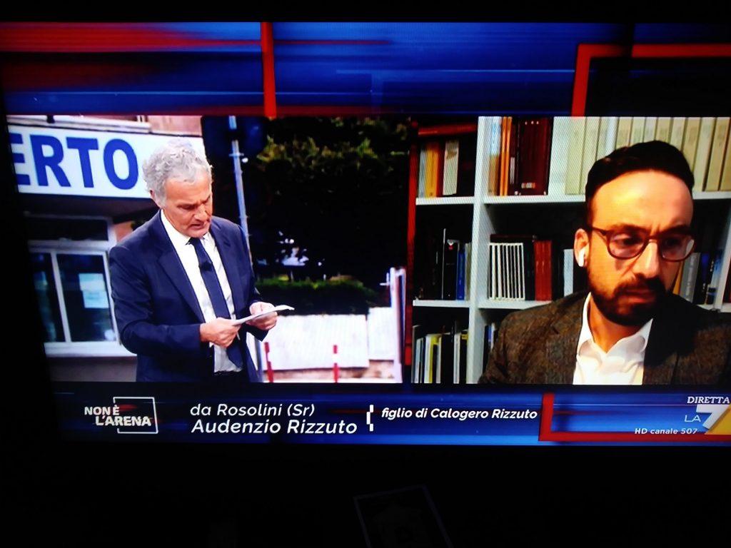 (Nel fermo immagine in copertina: a “Non è l’arena”, Massimo Giletti intervista Audenzio Rizzuto, figlio del compianto Calogero)