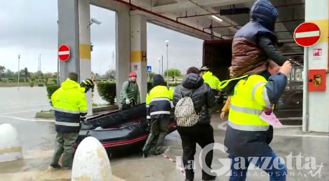 La loro abitazione è stata allagata in contrada Pantanelli, nei pressi del centro commerciale “Archimede”. Da qui la richiesta di aiuto e il soccorso eseguito utilizzando un gommone, portato sul posto da un camion. Il nucleo familiare è stato fatta evacuare dalla propria abitazione e condotto verso il parcheggio del centro commerciale. Ai lati del gommone, gli uomini della protezione civile, che lo hanno accompagnato fino a destinazione. Per primo è stato fatto scendere il piccolo, subito stretto tra le proprie braccia dall’esponente della giunta comunale, che ha seguito in prima persona tutte le fasi del soccorso.