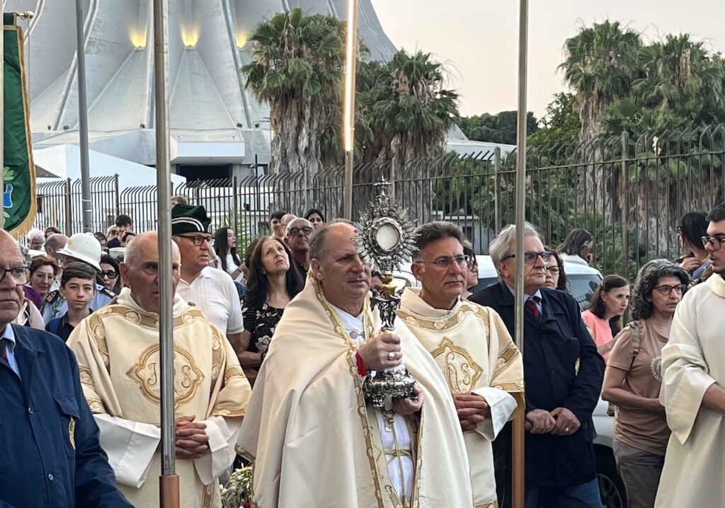 Le parole dell’arcivescovo sono state pronunciate al termine della celebrazione eucaristica tenutasi nella basilica santuario della Madonna delle Lacrime, da dove è poi partita la tradizionale processione del Corpus Domini. Il corteo, composto da sacerdoti, religiosi, confraternite, associazioni e numerosi fedeli, ha attraversato le strade della città fino al sagrato della chiesa di San Tommaso al Pantheon. È qui che monsignor Lomanto ha impartito la benedizione eucaristica, tornando a riflettere sulla forza spirituale dell’Eucarestia come sorgente di speranza e carità. “L’Eucarestia è presenza di speranza, di pace e di carità“, ha sottolineato.