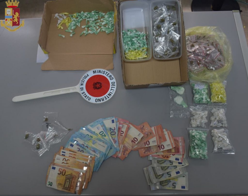 Inoltre, i poliziotti, operando in via Italia, grazie al fiuto del cane antidroga “Maui”, scovavano, all’interno di un’autovettura parcheggiata, un cospicuo quantitativo di sostanza stupefacente, circa 93 grammi di hascisc e 80 grammi di cocaina. Il soggetto che aveva in uso l’autovettura, identificato in Aggraziato Antonio, siracusano di 21 anni, veniva trovato in possesso anche di 2.500 euro, probabile frutto dell’attività di spaccio. Gli investigatori, nella considerazione di quanto rinvenuto, ovvero del cospicuo quantitativo di sostanze stupefacenti del valore commerciale di circa 4000 euro per l’hascisc e di 8000 euro per la cocaina, hanno tratto in arresto il giovane per detenzione ai fini dello spaccio di droga e, su disposizione dell’Autorità Giudiziaria competente, lo hanno posto ai domiciliari.