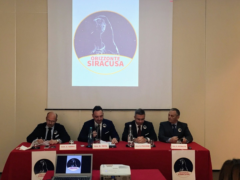 SIRACUSA – Si è svolta stamattina, pressoun noto albergo siracusano, la conferenza stampa di presentazione del nuovo movimento civico “Orizzonte Siracusa”. Ad illustrare caratteristiche e finalità del nuovo soggetto civico il Consigliere comunale Avv. Dario Tota, l’Avv. Salvatore Piccione, il Generale dell’Esercito italiano Giuseppe Petralito e il Dott. Giuseppe Garro.