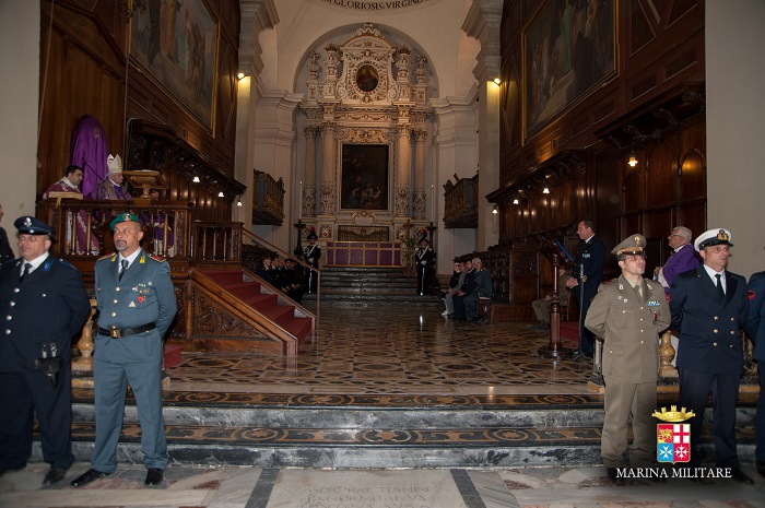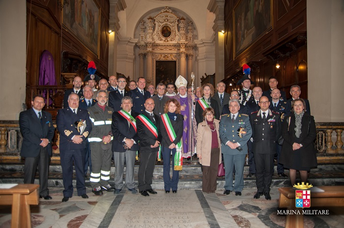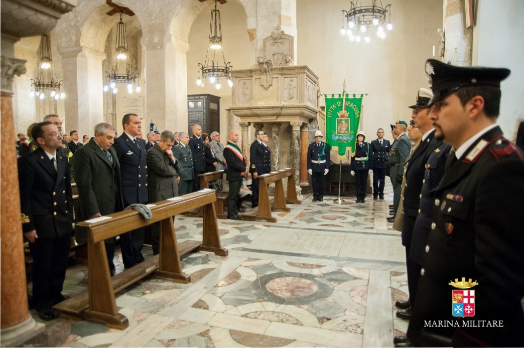 Nel suo intervento il contrammiraglio De Felice ha sottolineato: “ La cerimonia religiosa di oggi rappresenta per tutti noi, oltre che un incontro privilegiato con S.E. Rev.ma per il dono della sua autorevole parola, un’opportunità di aggregazione tra tutti coloro che sono al servizio dello Stato. La sinergia di intenti tra le forze armate e le forze di polizia salta il valore dei nostri militari, protagonisti nel garantire la sicurezza della comunità, sempre più impegnati come primi attori nelle iniziative internazionali, in varie regioni di crisi del mondo, in operazioni di stabilizzazione, di ricostruzione, di protezione di civili, di pacificazione e di cooperazione sociale tra i popoli. Queste attività – aggiunge l’alto ufficiale – sono svolte dai nostri uomini e donne con estrema professionalità, dedizione ed umanità. Essi contribuiscono ad alimentare il consenso e la credibilità nei confronti del nostro Paese e confermano, altresì, la naturale propensione del popolo italiano a nobili sentimenti come l’assistenza, la solidarietà, il soccorso e la salvaguardia della vita umana. Trovandomi a Siracusa, non posso sottolineare come questa sinergia si sia rivelata e si confermi quotidianamente solida ed efficace nell’emergenza immigrazione, sinergia straordinaria tra chi opera in interventi in mare a tutela della vita umana e chi garantisce sicurezza ed assistenza a terra, in un contesto di risorse ed assetti spesso non facili”. Durante il suo intervento il contrammiraglio De Felice ha preso come esempio il secondo capo incursore Sebastiano Denaro insignito della medaglia d’oro al valore della Marina con la seguente motivazione: “Tornato in azione in territorio afgano dopo le gravi lesioni subite durante una precedente missione, nel corso di un durissimo scontro a fuoco contro forze ostili, nonostante le ferite riportate, incurante della sofferenza, con grande coraggio e sprezzo del pericolo, reagiva al nemico esortando i componenti della sua unità a non curarsi delle sue condizioni e a reagire all’offesa per non farsi sopraffare. Splendida figura di sottufficiale incursore di elevatissime virtù militari, mirabile esempio di ardimento e coraggio, con la sua azione, in un contesto multinazionale, ha contribuito ad accrescere il prestigio del Reparto, della Marina Militare e della Nazione”.