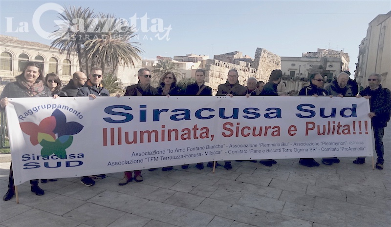 SIRACUSA – I rappresentanti delle associazioni delle contrade balneari hanno manifestato il disagio dei residenti per l’assenza di sicurezza da Plemmirio all’Arenella, da Ognina a Fontane Bianche, oltre alla carenza di illuminazione rivendicando al Comune interventi di manutenzione delle strade. Lo hanno fatto con un sit-in a Largo XXV Luglio, alle porte di Ortigia, esponendo uno striscione.