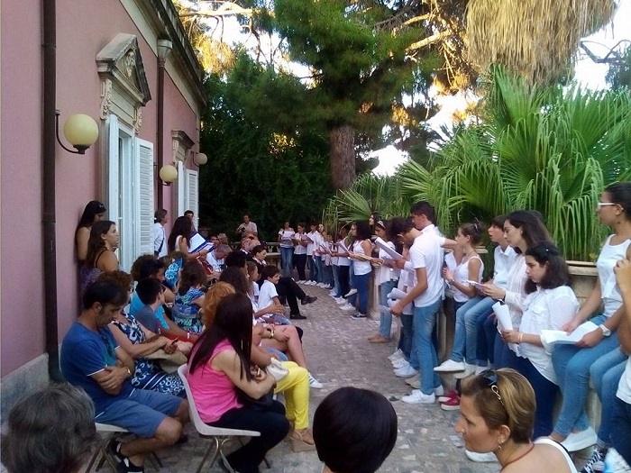Oltre 50 ragazzi dai 6 ai 16 anni, magistralmente guidati dai loro docenti, gli attori: Michele Dell’Utri, Doriana La Fauci e Attilio Ierna, hanno così concluso la loro attività annuale cantando, raccontando la villa, il giardino, Christiane Reimann e recitando brani di Cechov, Pirandelo e Beckett. Per la notevole affluenza di pubblico i giovani attori hanno ripetuto per ben tre volte il loro percorso narrativo raccogliendo alla fine una vera ovazione da parte dei presenti”