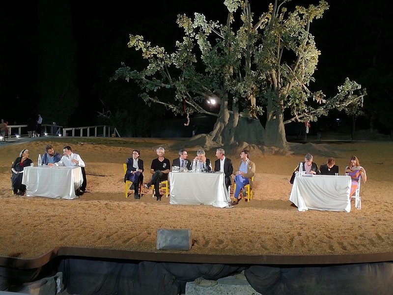 Il tribunale teatrale ha visto il giornalista di Rai3 Sicilia, Nino Amante, in qualità di giudice. I rappresentanti dell’accusa e della difesa, rispettivamente Eugenio Albamonte, Presidente dell’Associazione Nazionale Magistrati e l’avvocato Valerio Spigarelli, hanno chiamato a testimoniare gli attori Isa Danieli (Giocasta), Guido Caprino (Eteocle) e Anna della Rosa (Antigone). Al termine di un appassionante dibattito, il magistrato Michele Consiglio ha invitato il pubblico, attraverso cartellino, a giudicare Polinice.