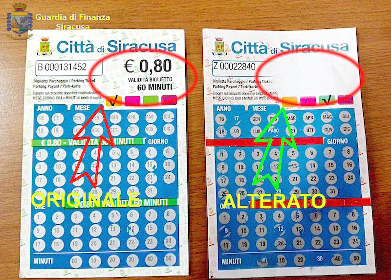 Sono state le Fiamme gialle aretusee ad individuare i ticket “posteggi-auto” per strisce blu, circa 120 contenuti all’interno di una borsa indossata dall’indagato, che sono risultati “completamente difformi rispetto agli originali rilasciati dal Comune di Siracusa”. La successiva perquisizione domiciliare ha permesso di rinvenire altri 45 ticket.
