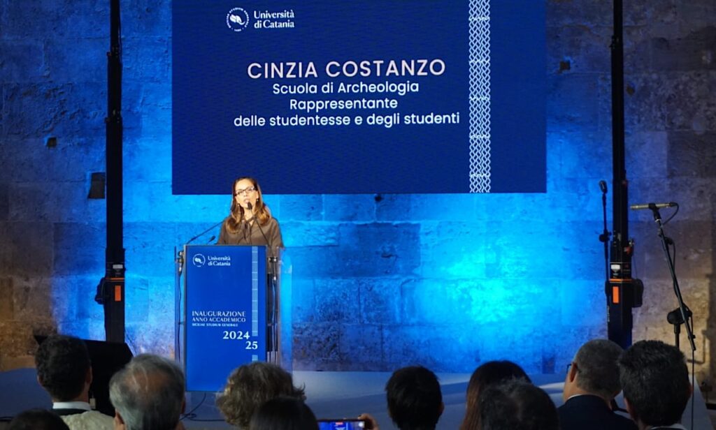SIRACUSA – “L’Università, la ricerca non possono fare a meno dello stretto legame con il territorio in cui viviamo. Scegliere di studiare a Siracusa, nella Struttura didattica speciale dell’Ateneo catanese, significa anche questo: riappropriarsi del proprio territorio, riannodare i fili con un passato glorioso, di cui troppo spesso siamo i primi a dimenticarci. Il messaggio che più di ogni altro vorrei giungesse vivo e attuale fino a noi in questa giornata è proprio questo: mettere al centro dei nostri interessi il patrimonio culturale, materiale e immateriale, a Siracusa significa investire nel nostro futuro e continuare la gloriosa secolare tradizione del Siciliae Studium Generale“. Così Cinzia Costanzo, allieva della Scuola di specializzazione in Beni archeologici, ha avuto questa mattina l’occasione di farsi portavoce dell’intera comunità degli iscritti ai corsi di studio della Sds aretusea, salendo sul podio nel corso della cerimonia di inaugurazione del 590° anno accademico dell’ateneo catanese che si è svolta nella sala Ipostila del Castello Maniace di Ortigia.